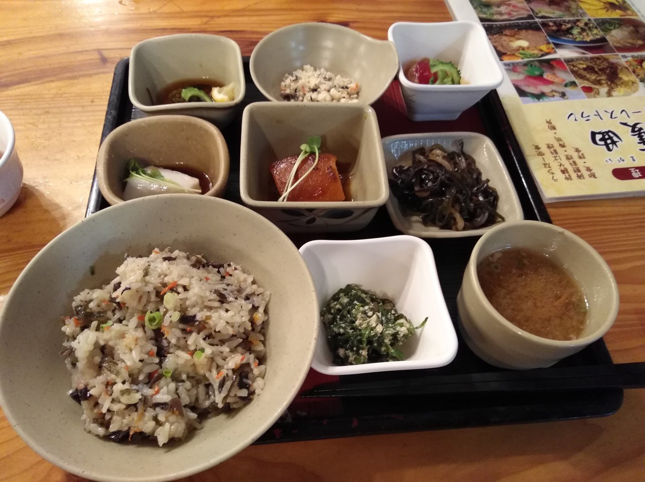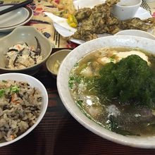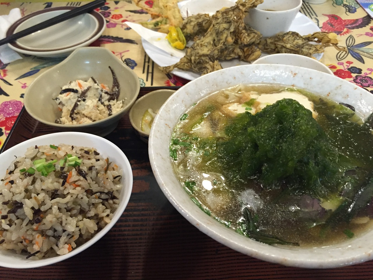 ちょっとやわらかめのクファジューシー、天ぷら、刺身、どれもよかったです。ラフテーは美味しいけれど普通かな。天ぷら盛り合わせはもずくを目的で頼んだのですが、紅芋があまりに美味しくてビックリ!!紅芋のデザートもあったので、頼めばよかった。