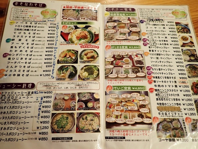 メニューもお寿司からステーキ、沖縄そば、チャンプルー系、と幅広く取り揃えており、私は目当てのヒートゥ料理を頼もうとしましたが、家族の反対もあり、チーイリチャーを注文。