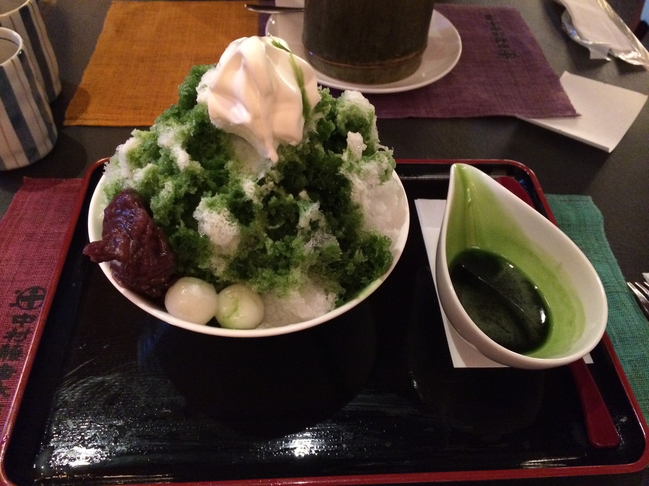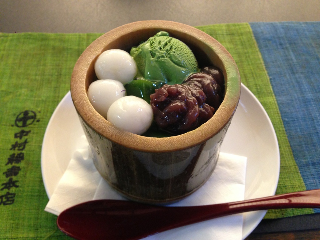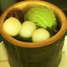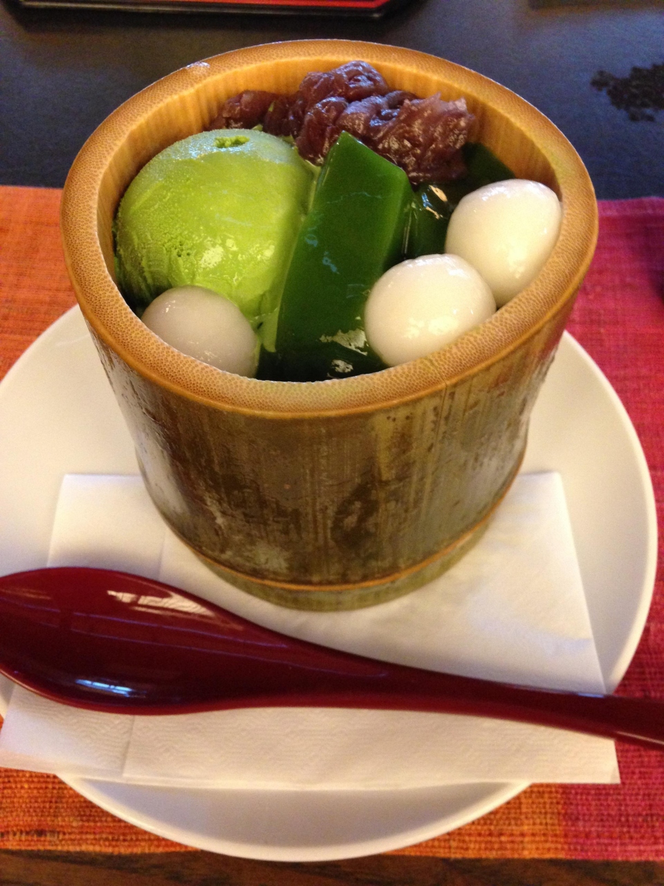 「宇治抹茶パフェ」を注文しました。竹の器に入っています。抹茶アイスが非常に濃いです。また抹茶のゼリーも非常に美味しいです。私的には無料で出してくれる「番茶」の美味しさが忘れられません!ちなみに茶蕎麦も食べましたが、これは驚きませんでした。