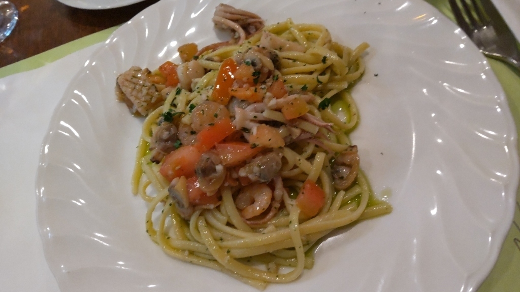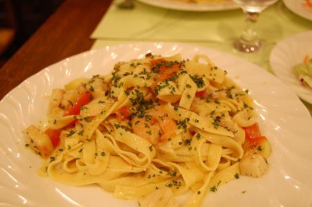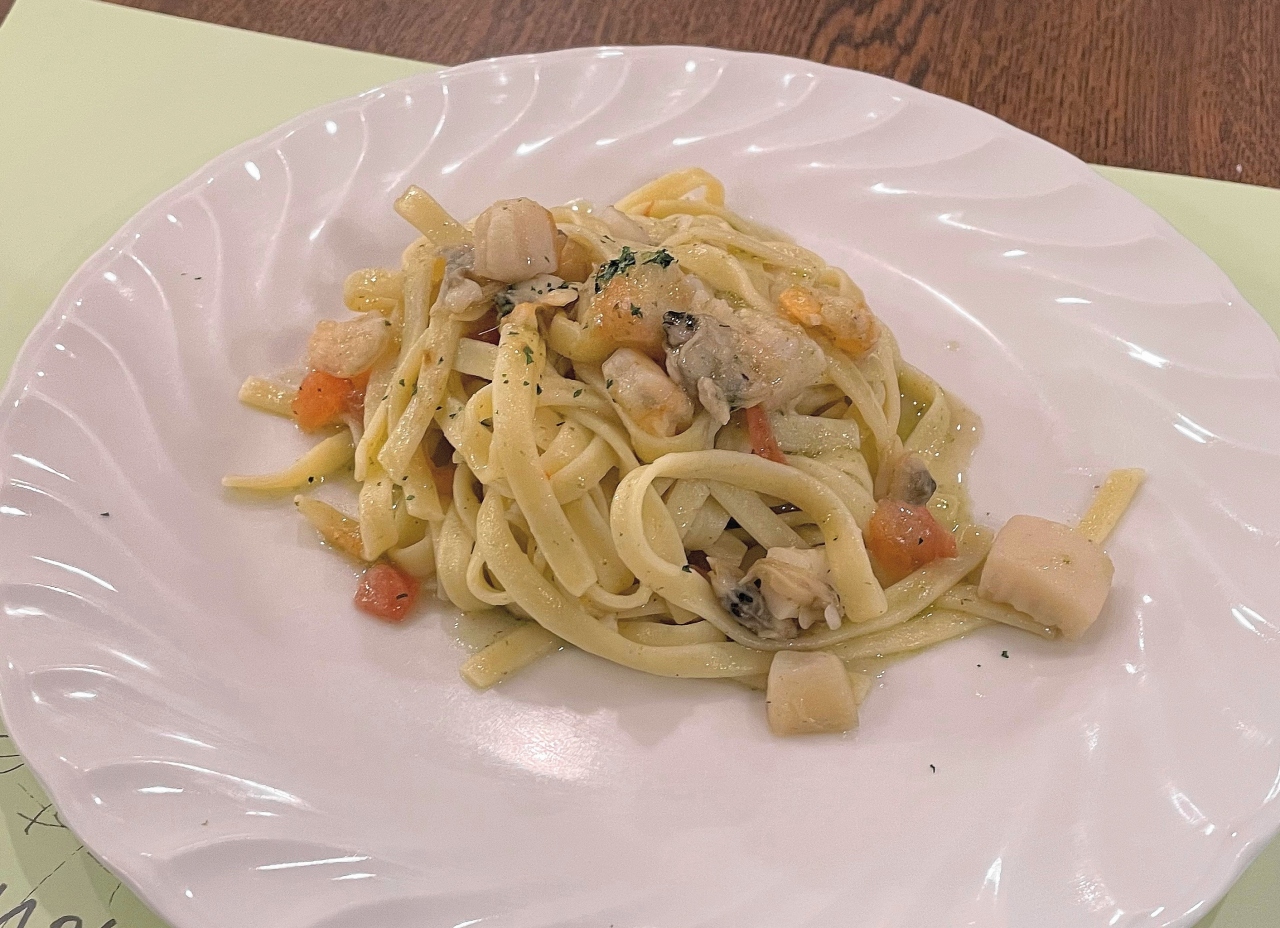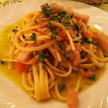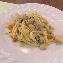 海老、イカ、あさりなど魚介がたっぷり入ったパスタ。