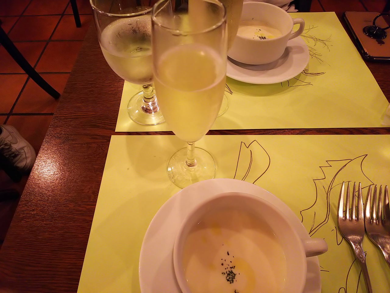ワインかシャンパンでも飲みたいが、ランチだし我慢。