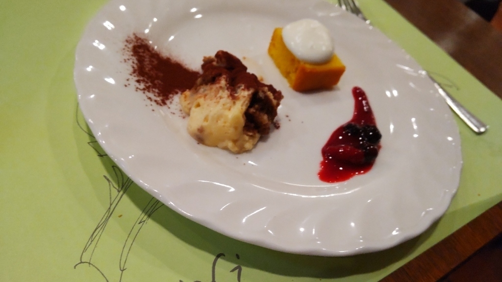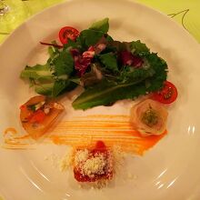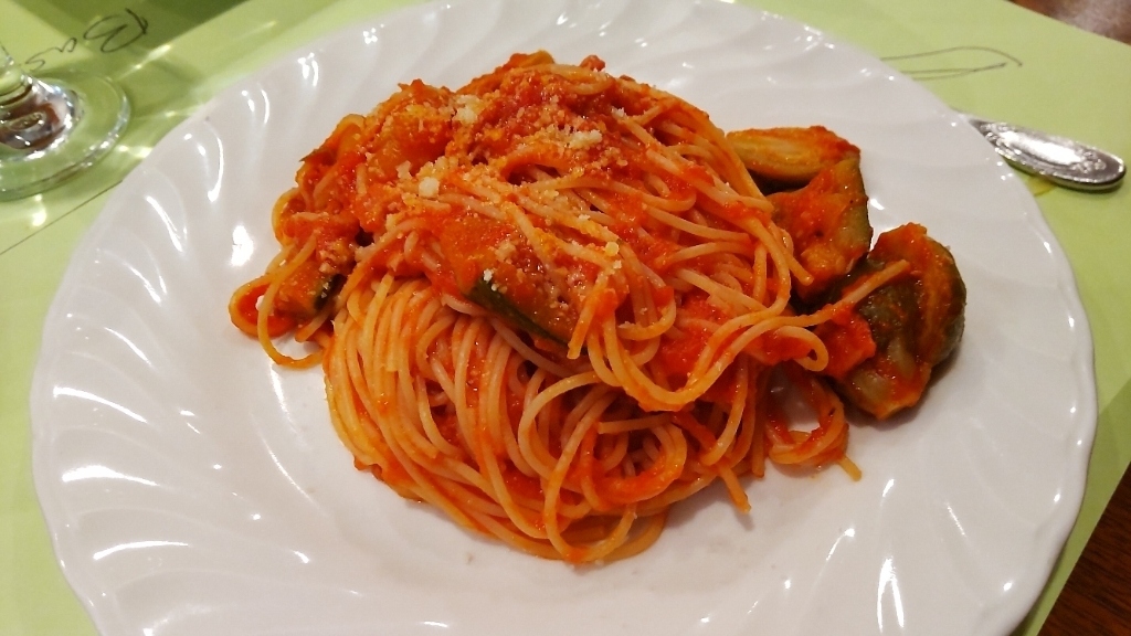 野菜のトマトソースか魚介のオリーブオイルソースで迷う。