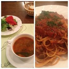 今回は、スープ、サラダ、パスタ、飲み物のセットにしました。
