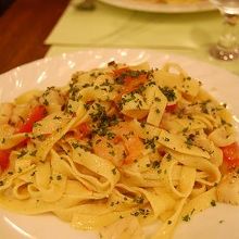 平打ちのパスタはあまり好みではないが、この店のはやはり美味しい。