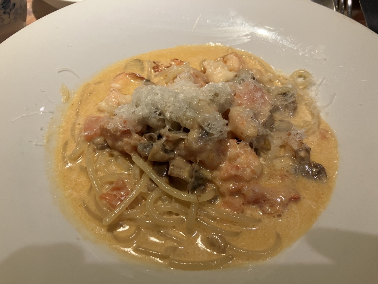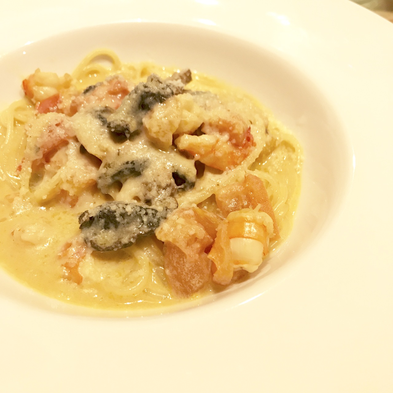 メインのパスタは、海老と甘エビ味噌クリームを選択しました。