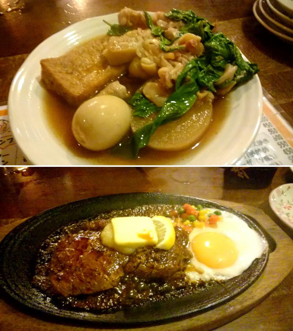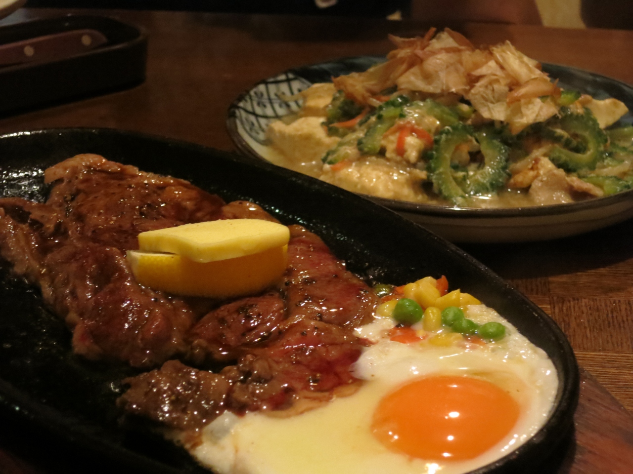島おでん盛り合わせ、ソーキの煮付け、ステーキ単品(オージービーフ)を注文。