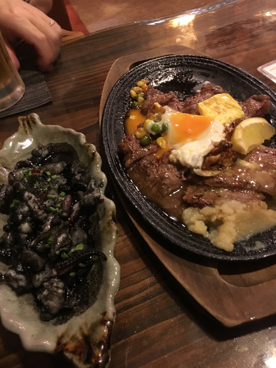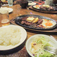 ステーキは鉄板で出てきますが、卓の上に出てきた時にはジュージューいってないのがちょっと残念。