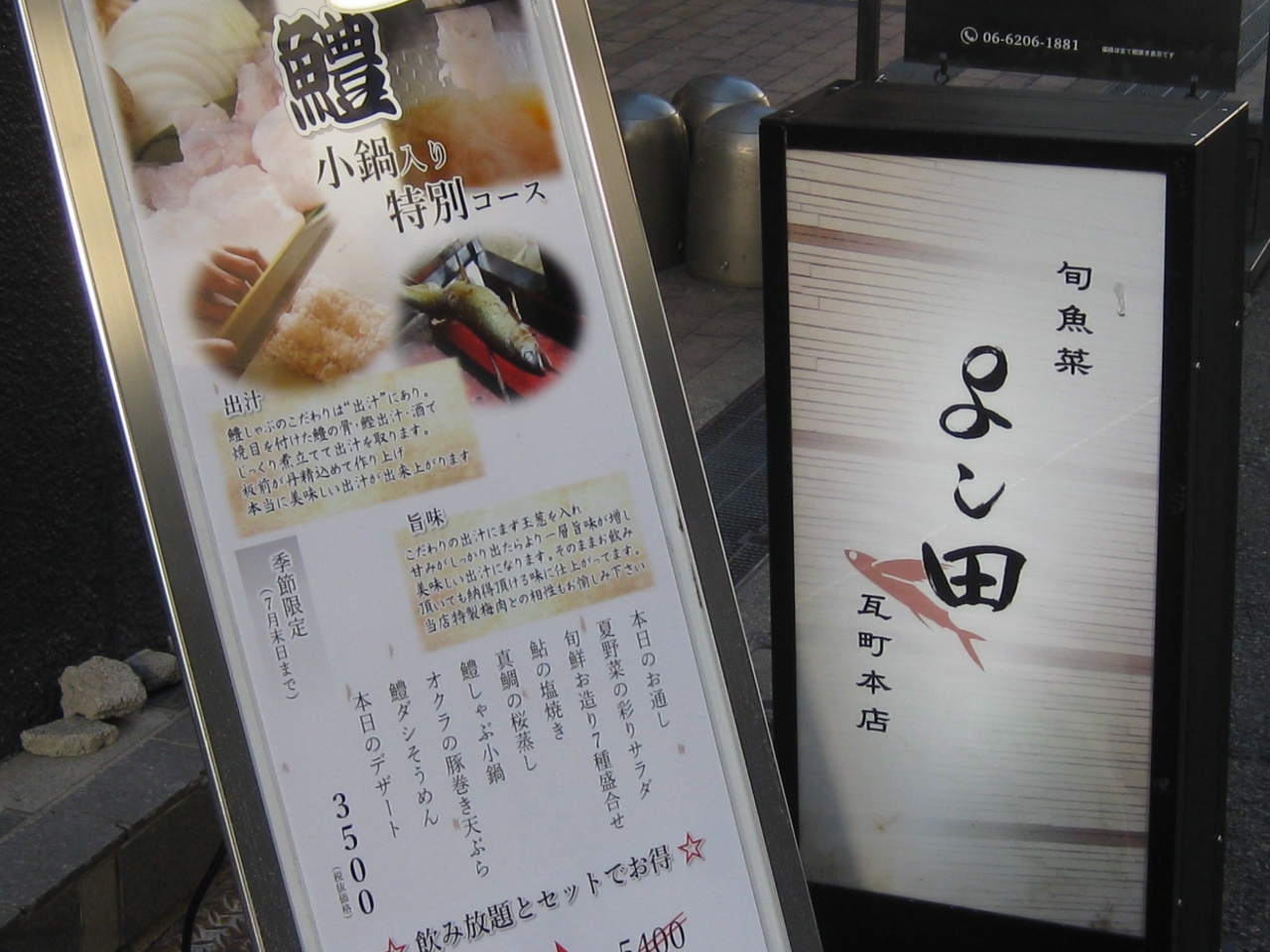 淀屋橋、船場あたりに割烹店を展開する「よし田」の本店になるのが瓦町店。堺筋の瓦町から東に一筋。新鮮な魚介を中心とした和食が... 続きを読むいただけ、社用にも使える店。