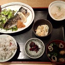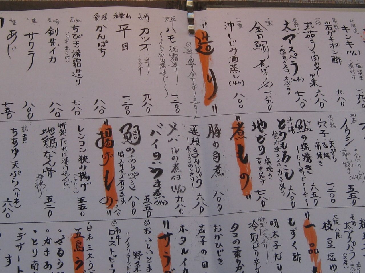 そんな「よし田」のランチはいたって庶民的で、700円均一で、海鮮丼、魚定食、肉定食の3種、海鮮丼は20食限定で12時すぐになくなってしまうので、食べたことはない。魚定食、肉定食とも高級な素材ではないが、割烹店らしい気配りを感じさせる。カウンター席からは厨房が見えるが、昼でも職人5人で夕方からの仕込みを兼ねてランチを提供していおり手抜きはない。