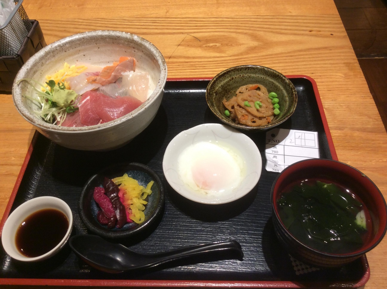 今日の魚は、白身フライといたって普通の食材だが、ソースでなく卵あんかけがかかっていて和風の味付、小鉢2品が付く。昼の客は多いが、待ち時間は少ないので回転はよい。