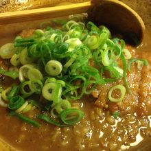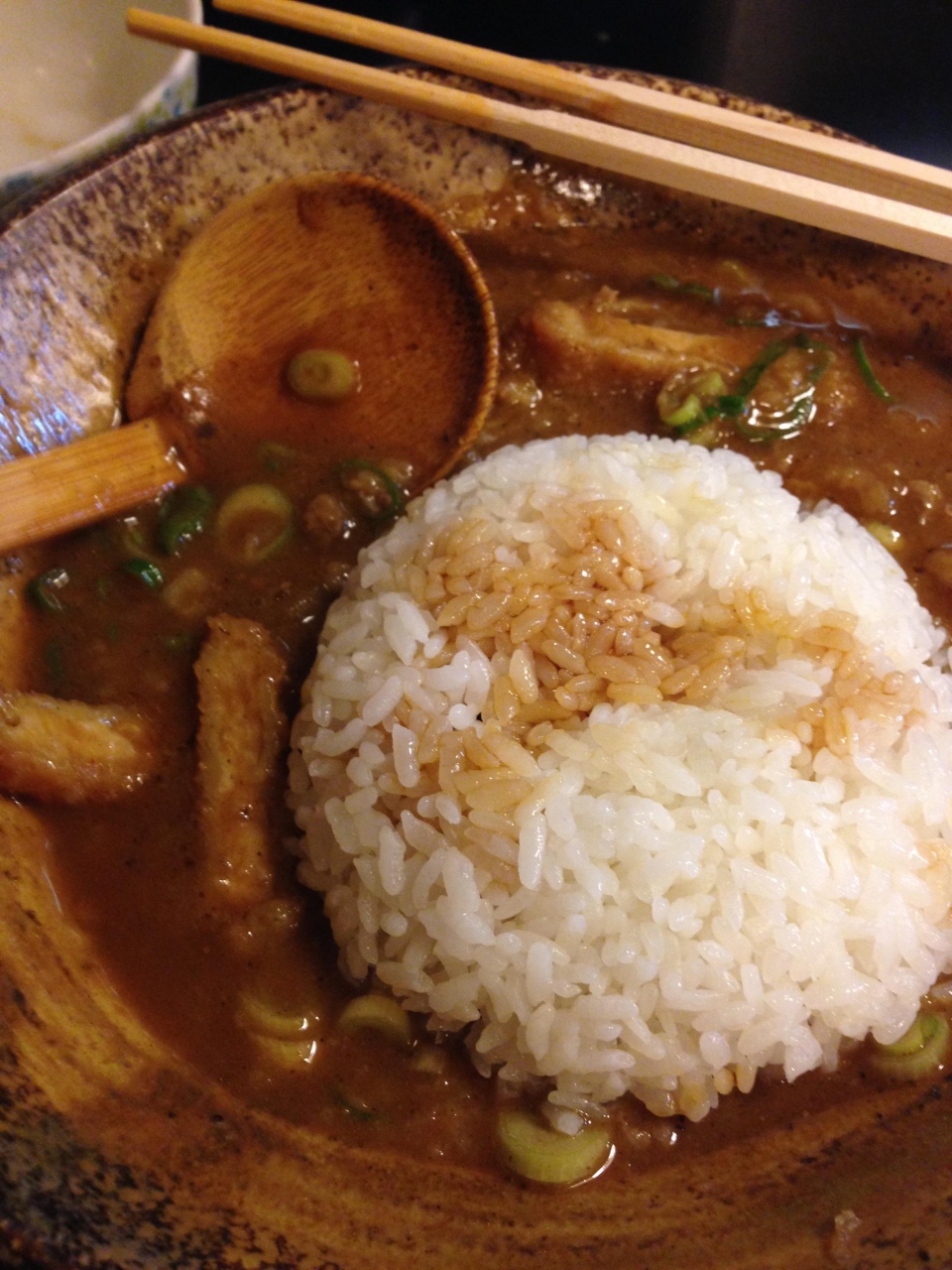 ほとんど待つことなく出てきました。テーブルには紙エプロンが用意されていて、心遣いが嬉しかったです。たっぷりのご飯、肉や天かす、刻みネギがたっぷり乗っていて、700円は安いと思いました。食べてみると、カレーはこってり感が強く、肉も甘すぎ、天かすの甘みと絡んで、美味しいとは言う内味でした。