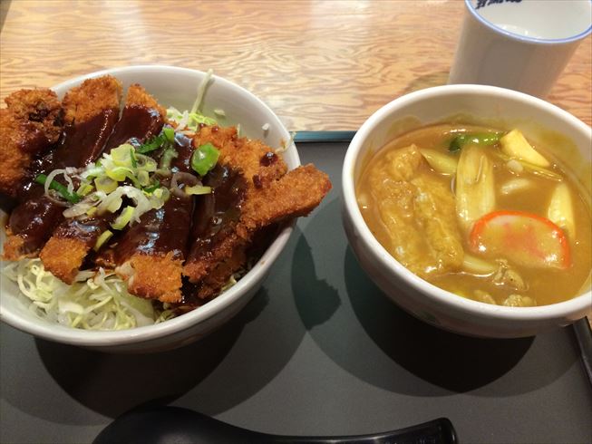 ランチのセットにカレーうどんにミニ味噌カツ丼が付くものがあったので注文した。