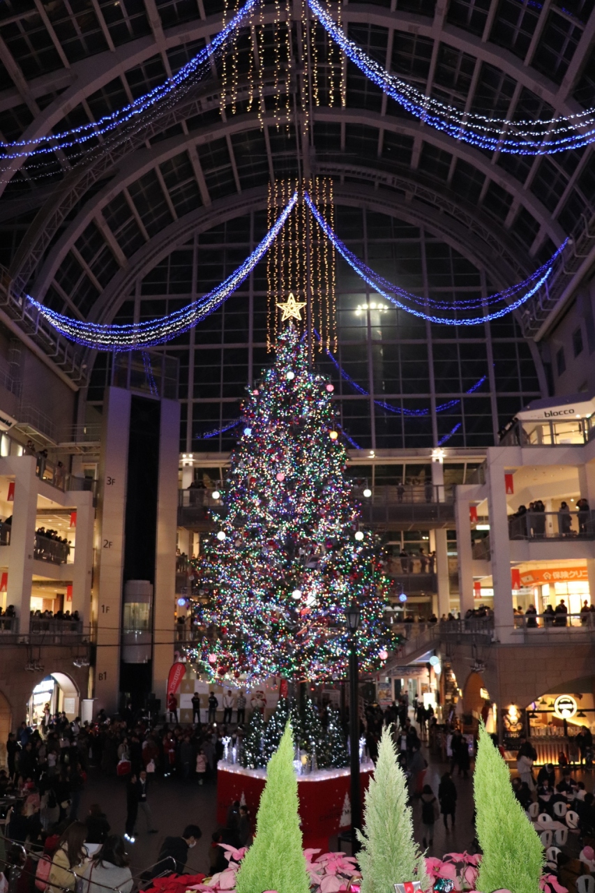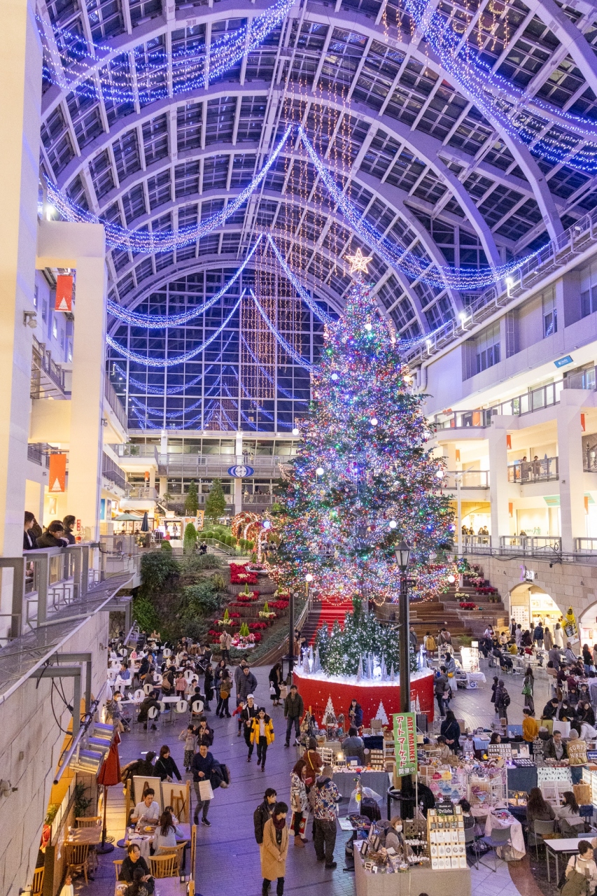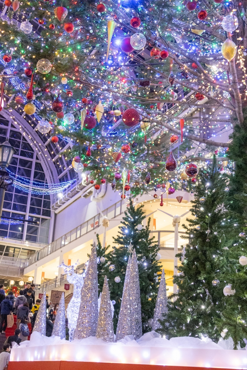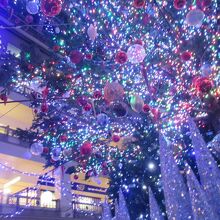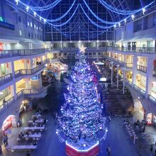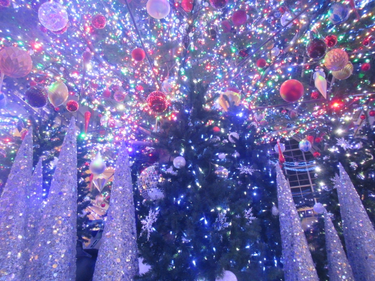 アトリウム内に立つツリーのため温かく鑑賞でき、ツリーの周囲のオープンテラスの飲食店で食事をしながらツリーを楽しむのもおススメです。