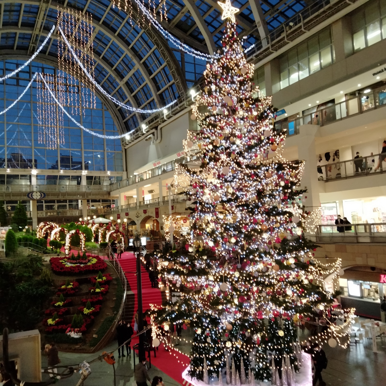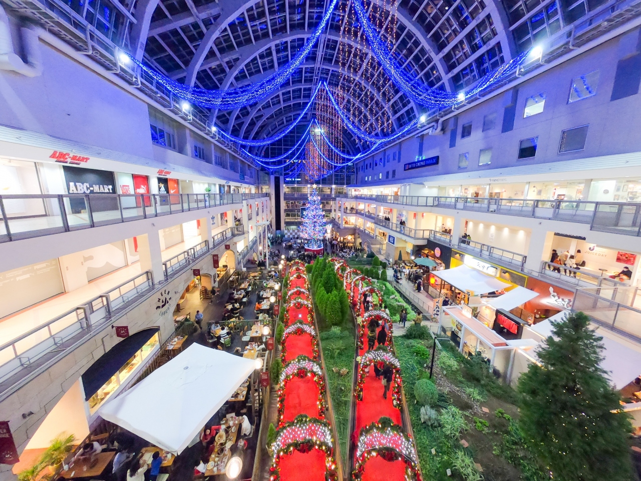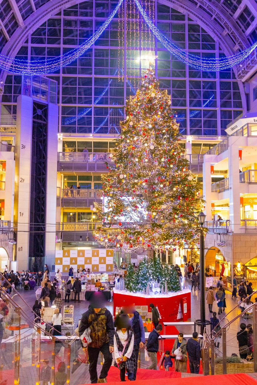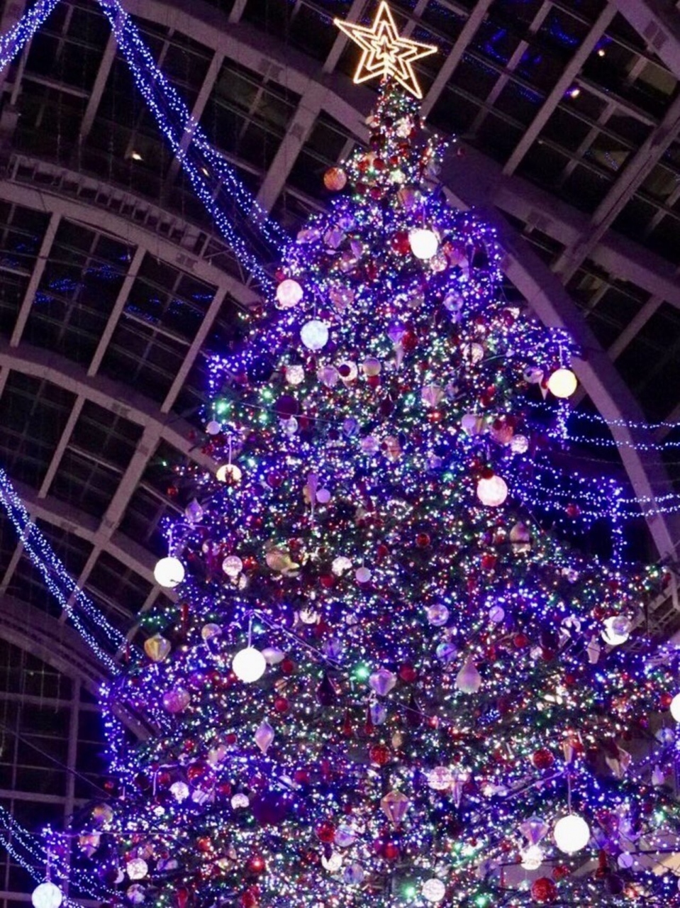 アトリウム内に立つツリーのため温かく鑑賞でき、ツリーの周囲のオープンテラスの飲食店で食事をしながらツリーを楽しむのもおススメです。