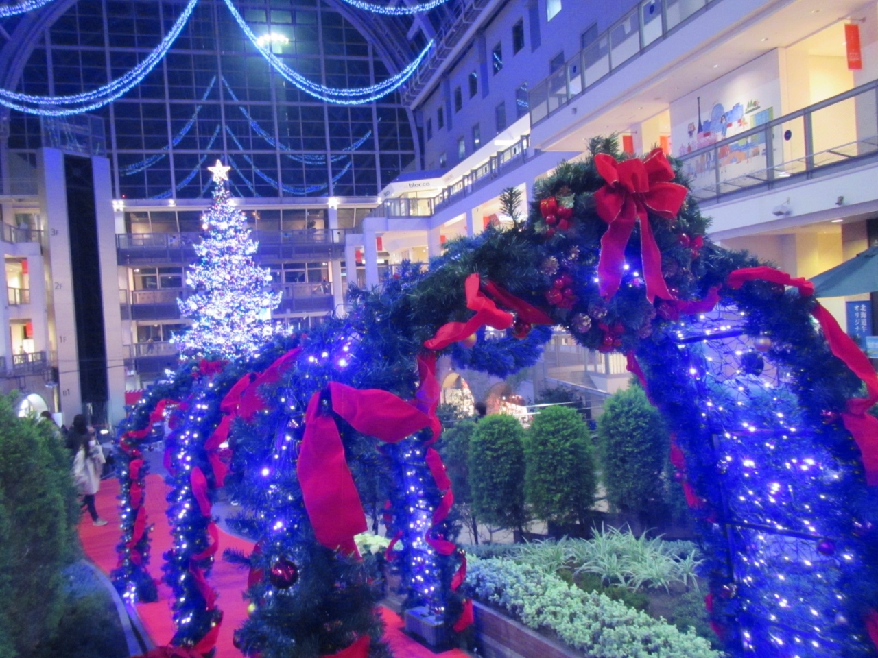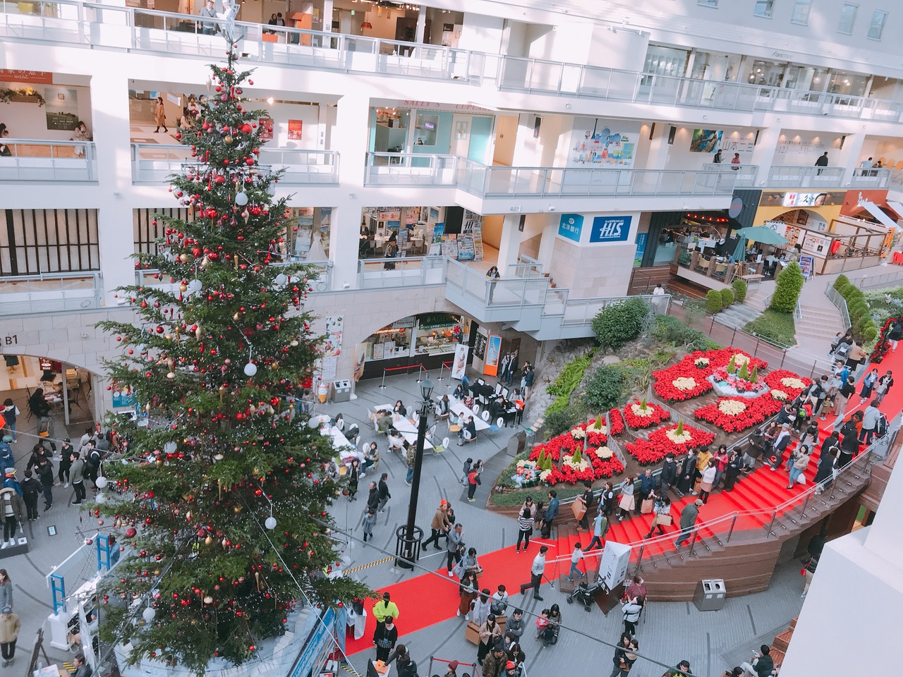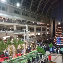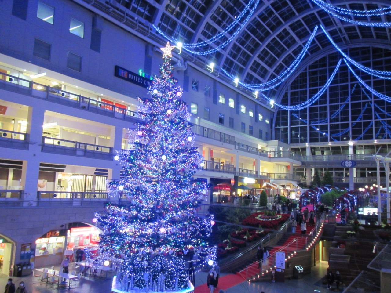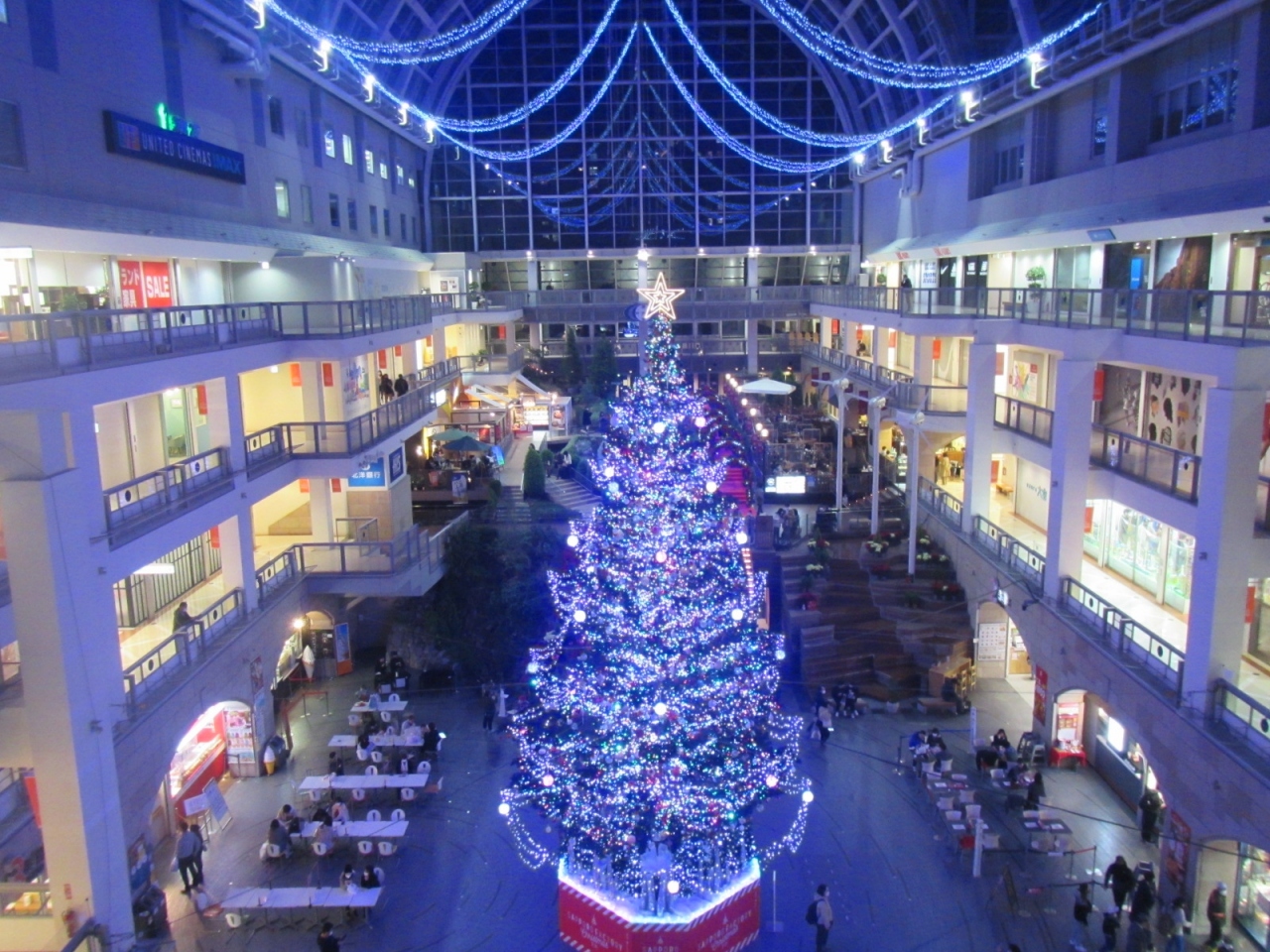 アトリウム内に立つツリーのため温かく鑑賞でき、ツリーの周囲のオープンテラスの飲食店で食事をしながらツリーを楽しむのもおススメです。