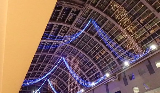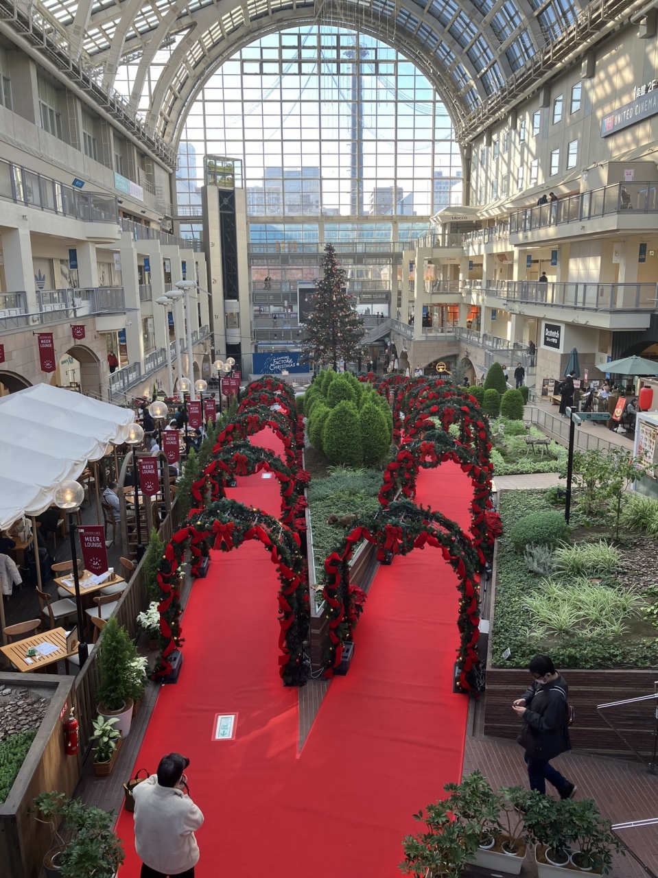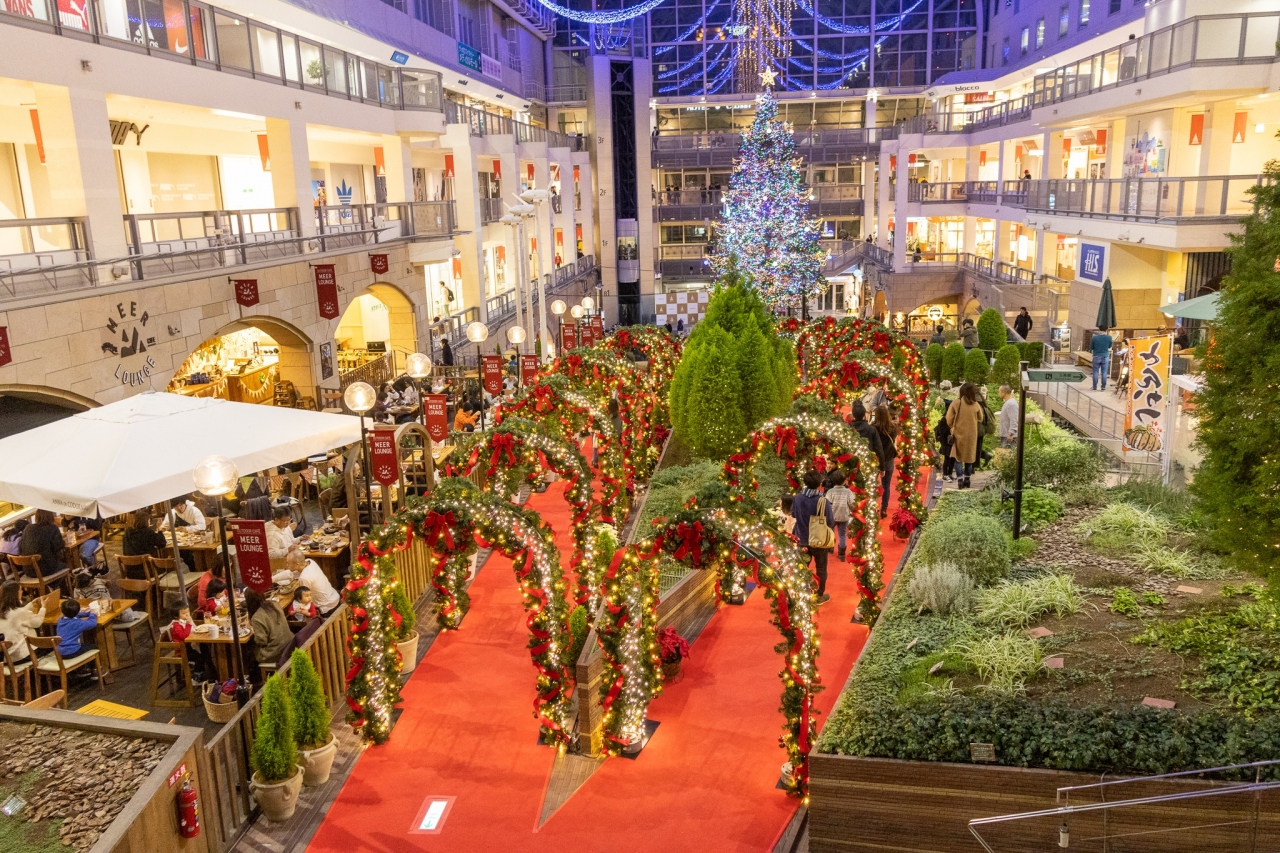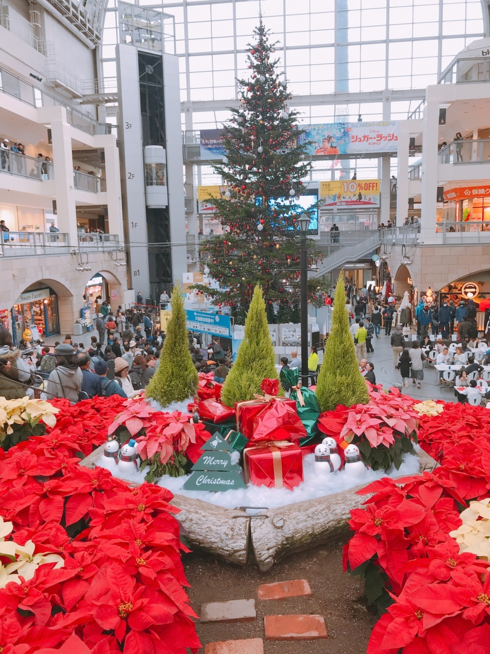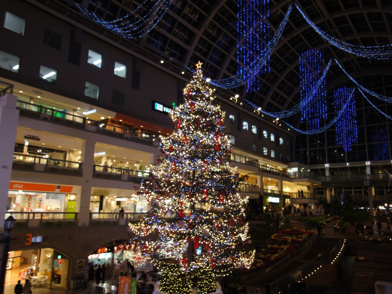 アトリウム内に立つツリーのため温かく鑑賞でき、ツリーの周囲のオープンテラスの飲食店で食事をしながらツリーを楽しむのもおススメです。