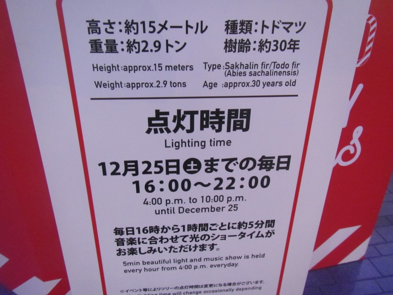 点灯してなくても十分キレイだった、かなり大きなクリスマスツリー!