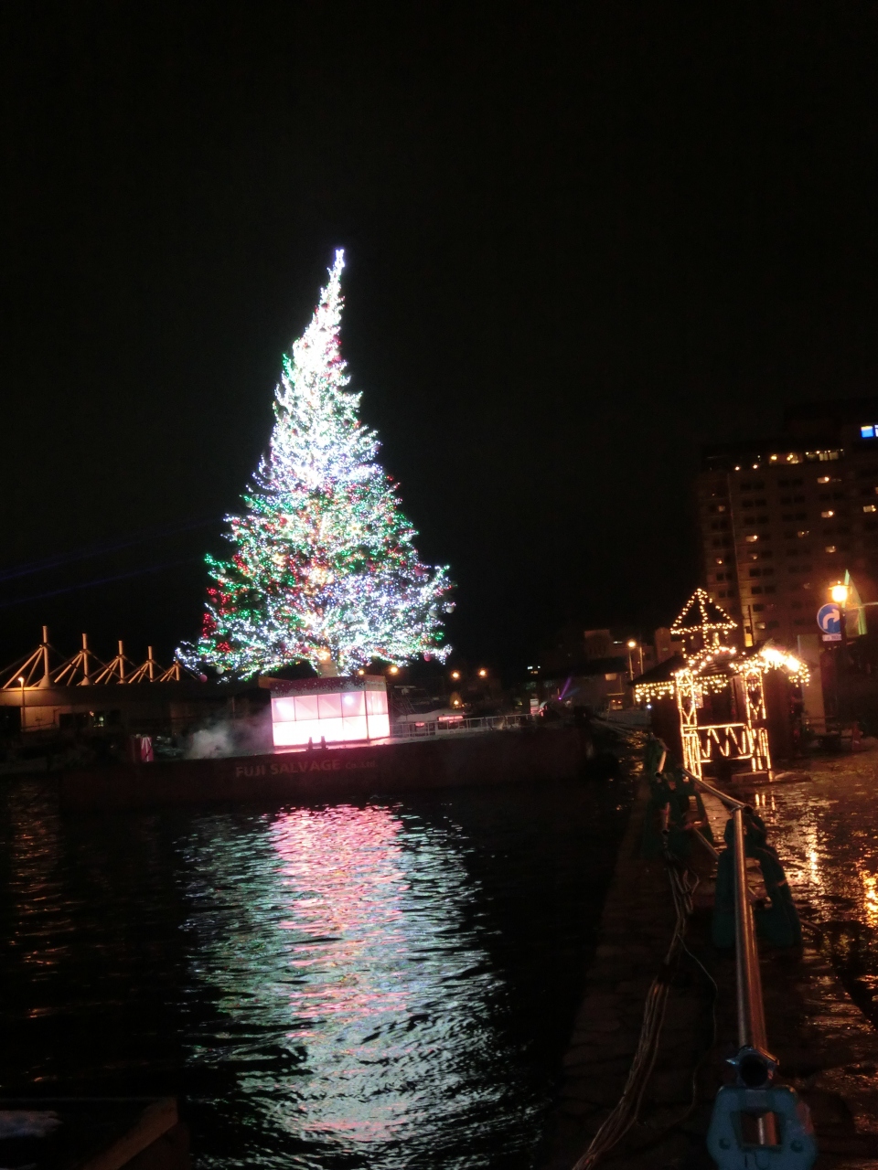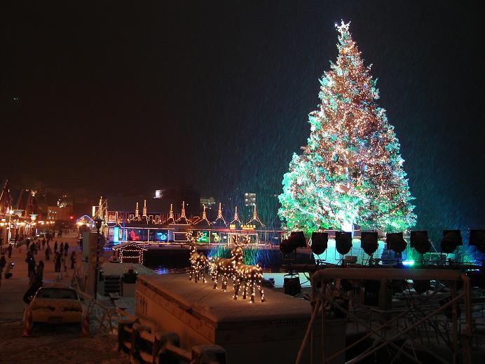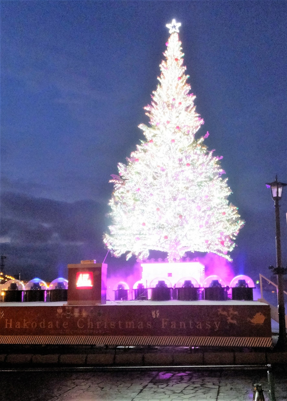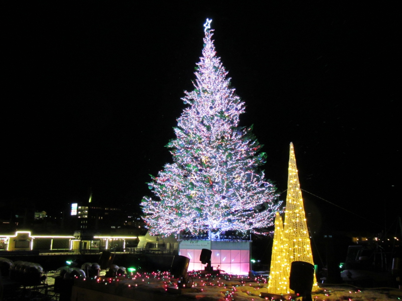 函館のベイエリアに輝く大きなクリスマスツリーが一番の見どころです。