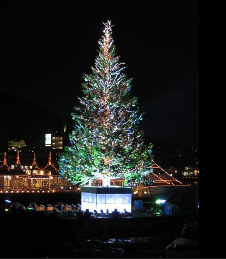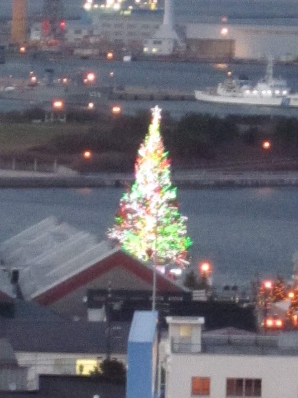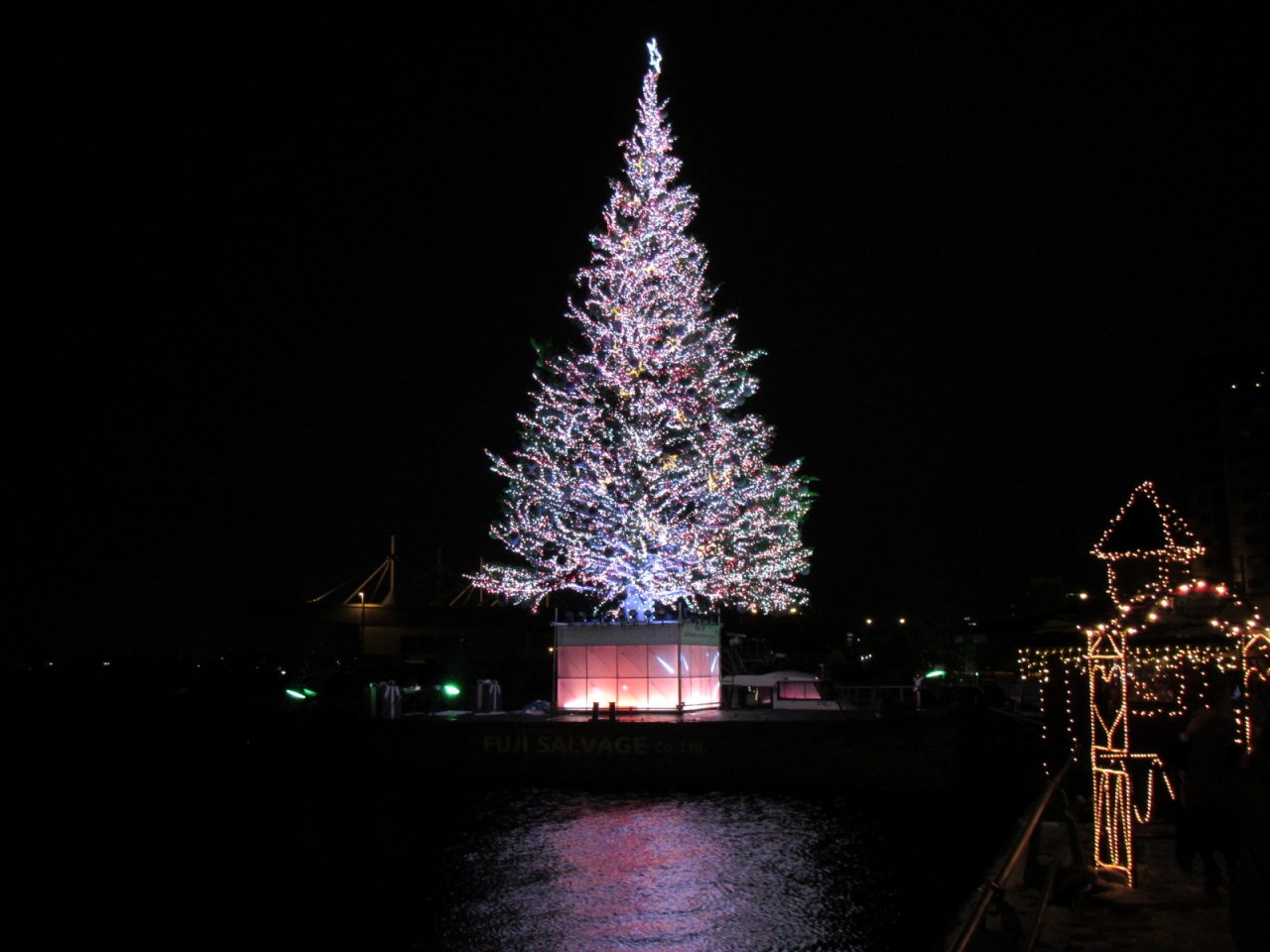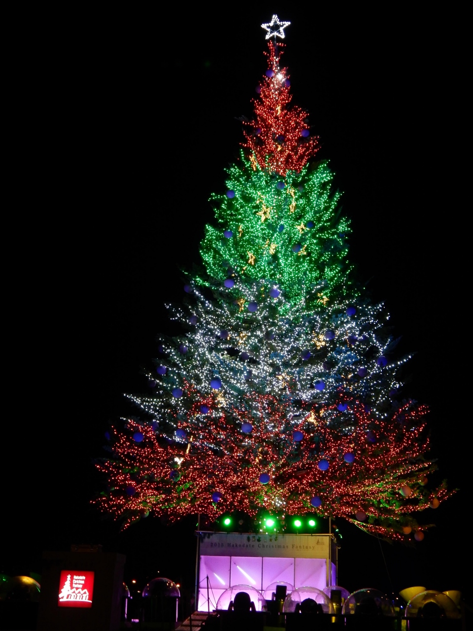 函館のベイエリアに輝く大きなクリスマスツリーが一番の見どころです。