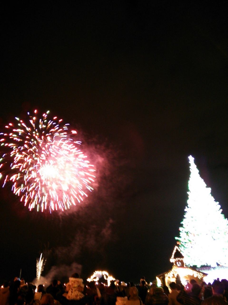 イルミネーションの点灯とともに一斉に花火が上がります。