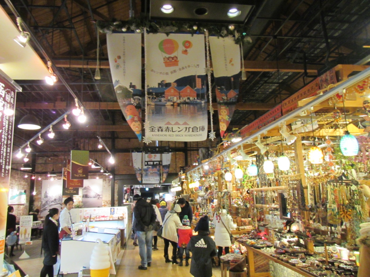 赤レンガ倉庫内では、アクセサリーやスイーツなどの美味しい食べ物を売る店があり、また、ツリー前ではミニステージが開かれる日もあって、クリスマスの雰囲気を盛り上げてくれます。