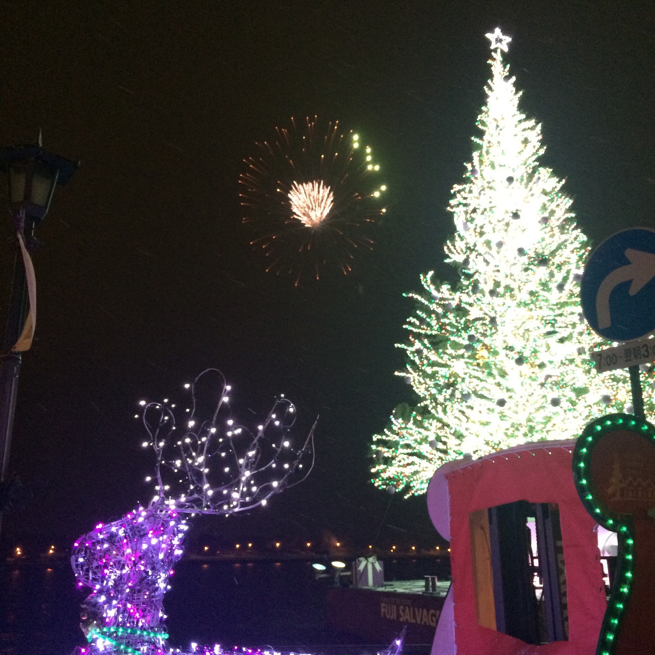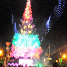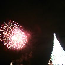 毎日18:00からツリー点灯と花火の競演があり、ビッ... 続きを読むクバンの曲に合わせて、光が走り、ツリーも変化します。