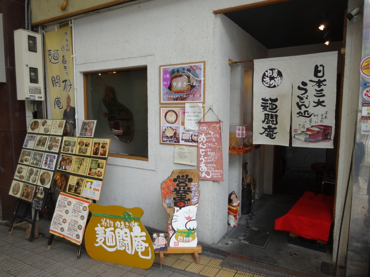 見て楽しい、食べて美味しい、麺闘庵の巾着うどん。