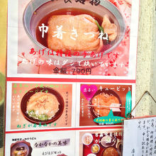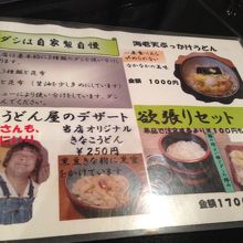 メニューにある「キューピットうどん」はおみくじ付きの割り箸を引いて、大吉なら木製のキーホルダーがもらえるなどのサービスがありました。