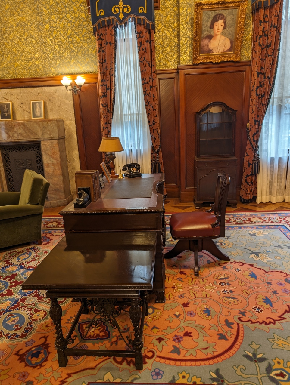天井の高いつくり、素敵な壁紙で囲まれた部屋、応接室や食堂、寝室などの高級さ、当時の侯爵(今でいえば上級国民になるのかも?)の生活が偲ばれる場所です。