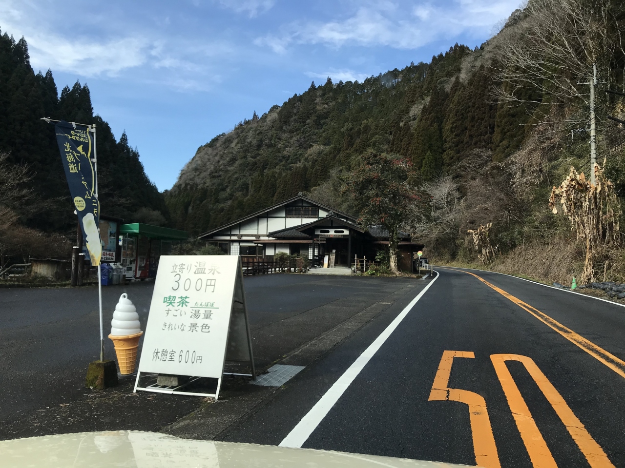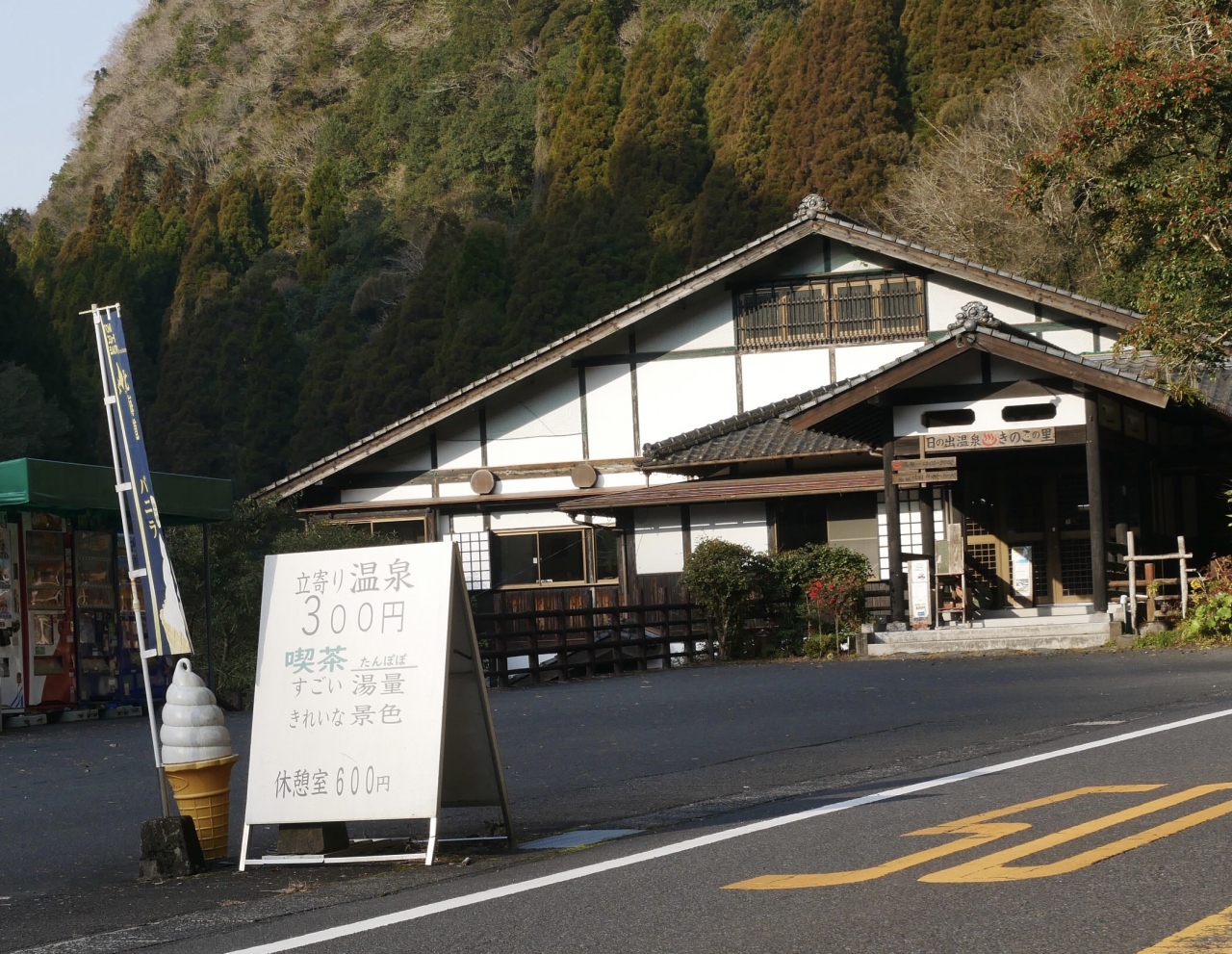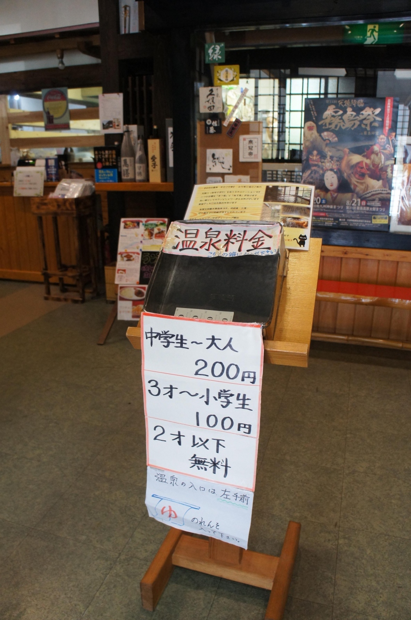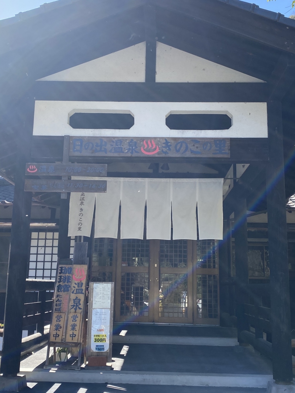 最初、妙見温泉方面に向かったのですが、途中に見かけた「日の出温泉 きのこの里」。何と、200円で入れます。