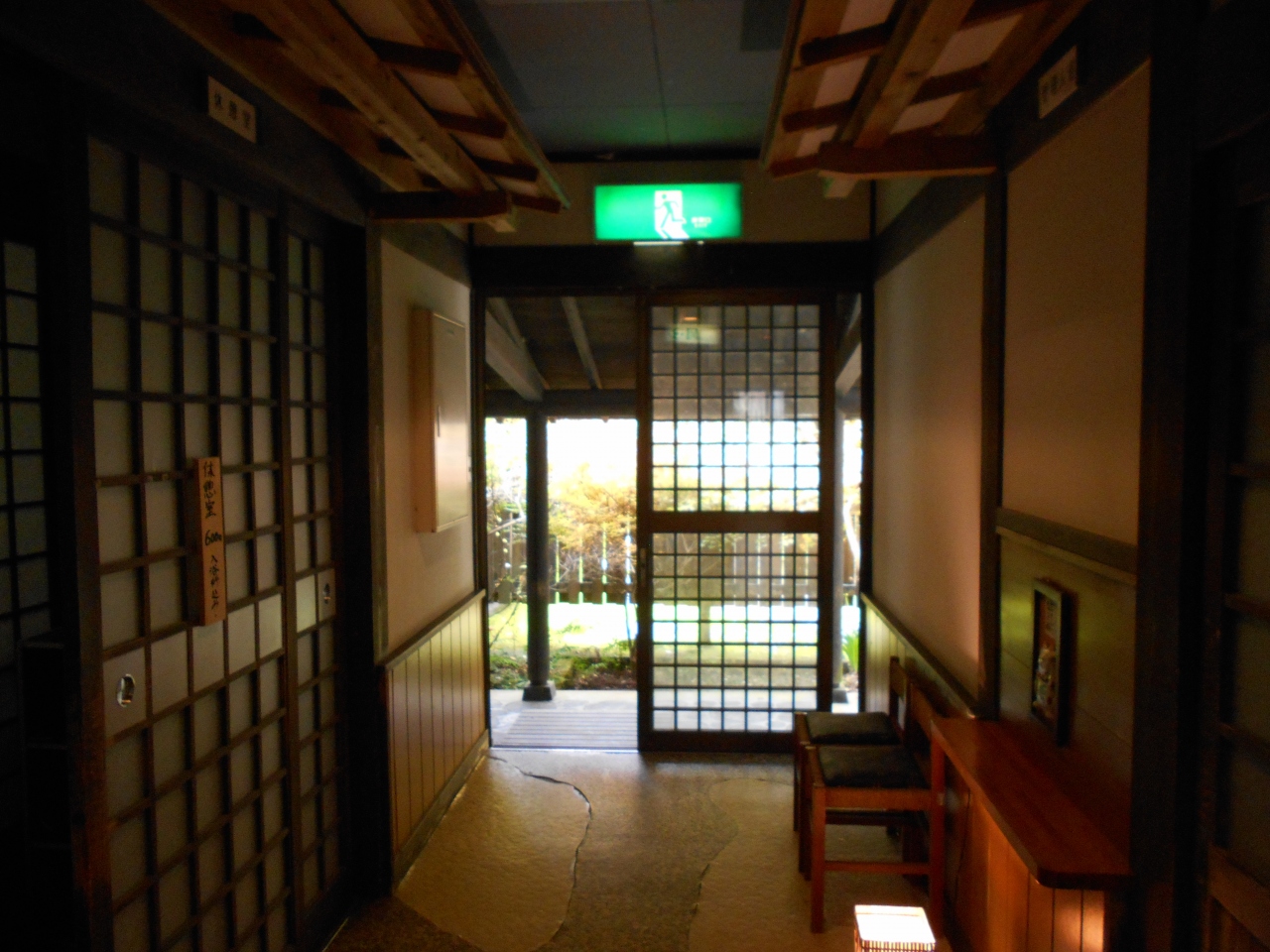 入口はいるとソバ屋さんになっていますが、「湯」ののれんがあり、其処の前で200円を払って、のれんをくぐり階段を降りていくと、温泉があります。