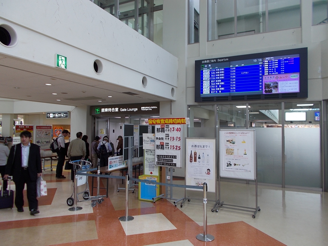 他にも石垣島や羽田などにも就航しているので、特に出発が重なる時間帯の保安検査場や制限エリア内の待合室は大混雑です。よって時間に余裕を持って空港に来られる事をお勧めします!!