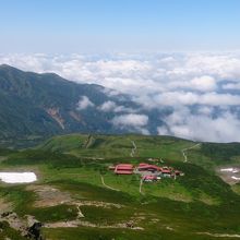 振り返って室堂山荘と別山