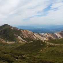 久住山から神明水を経て、火星表面を思わせるような星生山に登ると、ここでパートナーがそろそろつらくなってきたとの言。