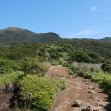 穏やかな登山道をしばらく進むと久住分かれに向かっていったん下る。ここからは目的地である久住山が見えるが、思いのほか山頂までが高く遠い。