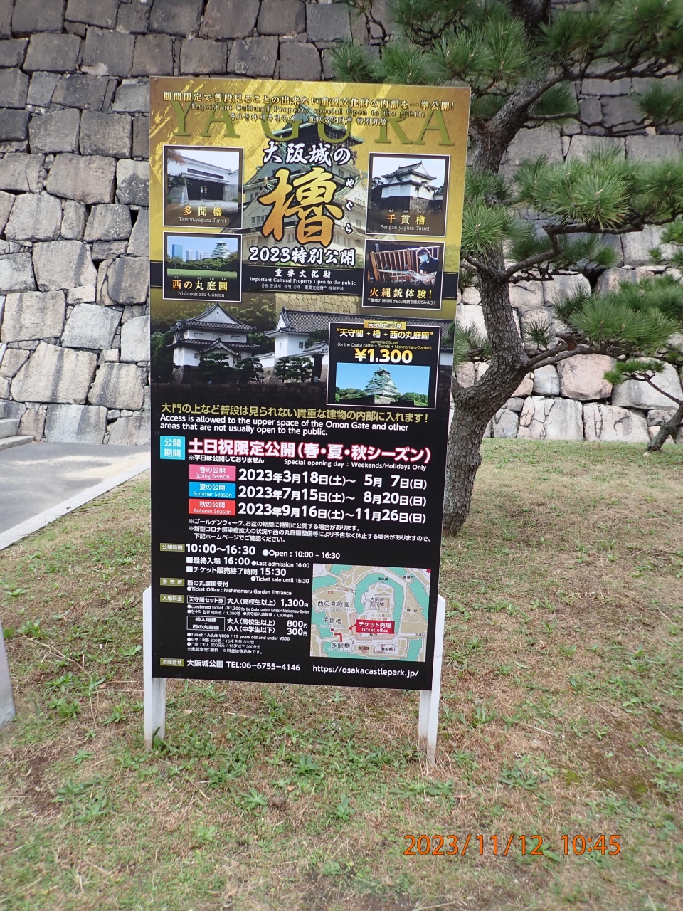 • 大阪市観光で立ち寄りました。大阪城は、豊臣秀吉のお城で有名ですが、豊臣家が滅亡した後に、徳川家により完全に立て直されたそう...  続きを読むです。現在の大阪城は、徳川秀忠が実質的な新築に相当する修築を施した大坂城(徳川大坂城)の遺構になるとのことです。天守閣では、「上方の家康」展、千貫櫓と多聞櫓では秋の特別公開として「大阪城の櫓」見学を実施してました。  閉じる
