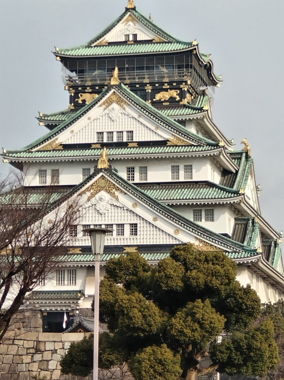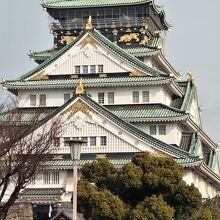 久しぶりに大阪城を訪れました。お堀にそびえる大きな石垣に毎度圧倒されますが冷静に見ると天守閣も大きな石垣に乗っていますね。...  続きを読む鮮やかな白い外壁に金色の装飾もとても映えています。左側のエレベーターは見なかったことにして天守閣を前から横から後ろからと一通り見て充実した訪問となりました。  閉じる