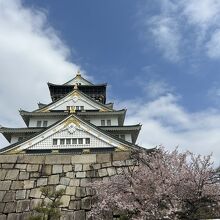 外観だけでも見応えがあり、桜の季節には桜と大阪城の