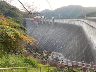 ... 続きを読む重力式コンクリートダムですが、堤体が直線ではなく緩やかに曲がっています。ダム堤体上は通行可能で、120mの高さから下流側を眺めると放水状態が見えて大変な迫力でした。