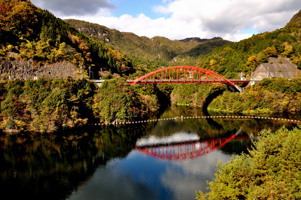 弥栄ダムによって造られた人造湖です。ダム湖100選にも選ばれている中国地方で最大級の人造湖で、湖に架かる主要な橋だけでも県... 続きを読む道116号線が通る全長560mもある斜張橋の“弥栄大橋”やその西に架かる“百合谷橋”、弥栄ダムの近くで国道186号線が通る可愛らしい赤い“飯谷橋”などがありました。それらの橋のたもとには、駐車場やトイレが整備された公園や散策路があっていろんな風景を楽しむことができました。添付写真の“弥栄湖周辺案内図”を参照ください。