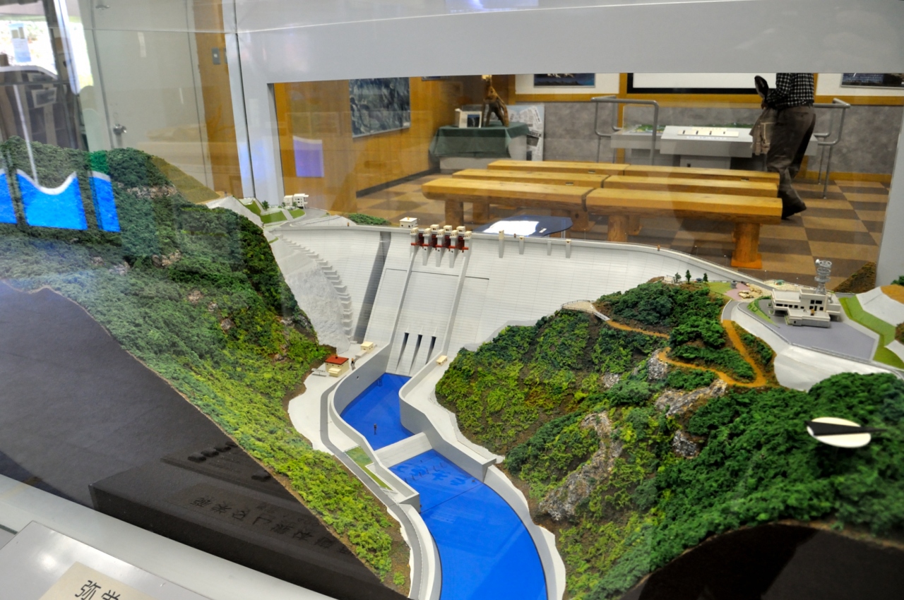オススメは、弥栄ダムの周辺で、ダム堤体上は通行可能で堤高120mのダムから眺める景色は大変迫力がありました。ダムサイト左岸にある“弥栄ダム展示資料室”は、ダムの役割や構造、ダム周辺の自然などについて模型やパネル展示されていて、子供たちに水の大切さを学習させるのにいい施設だと思いました。