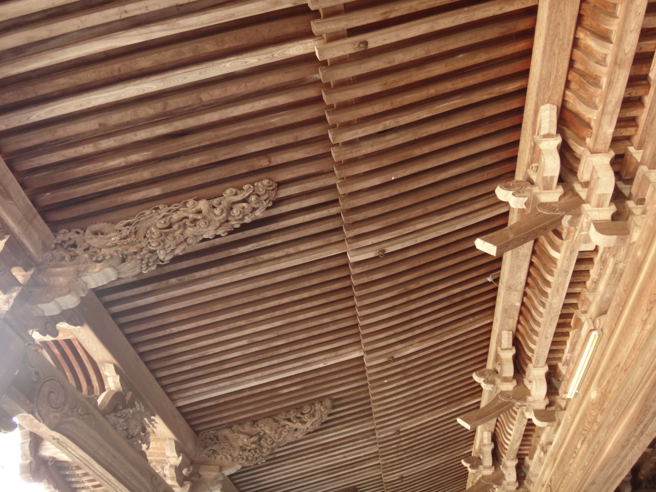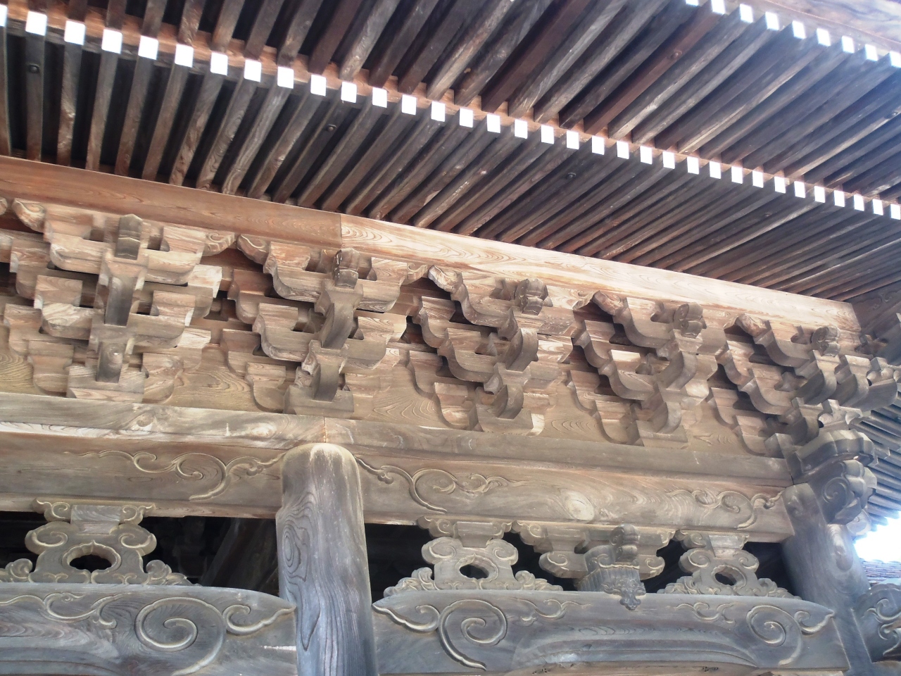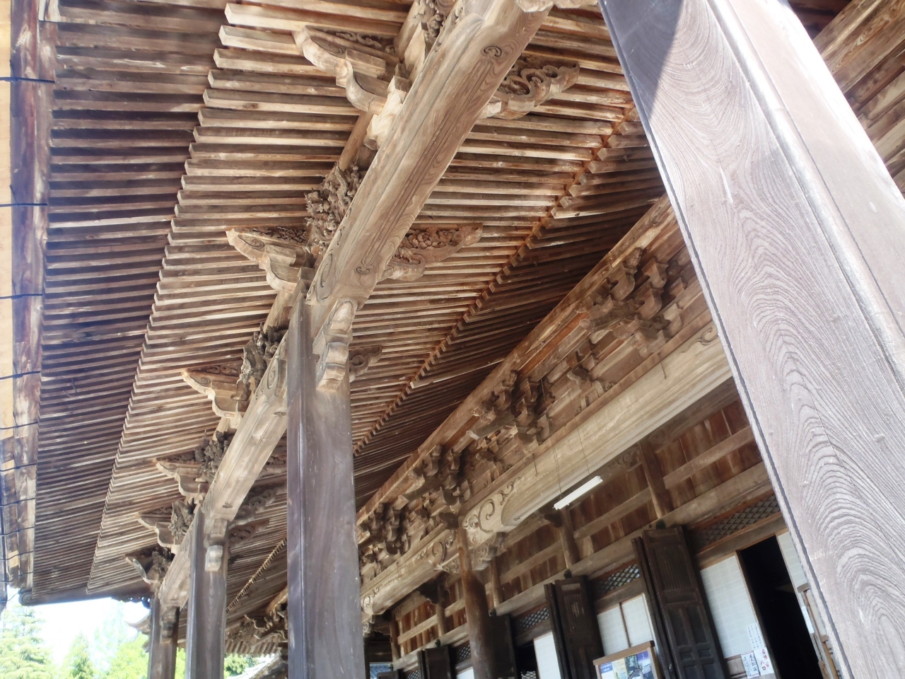 本堂内や太子堂内は撮影禁止ですが回廊沿いの木彫はOKで、随所に散りばめられた躍動感ある木彫を鑑賞できます。