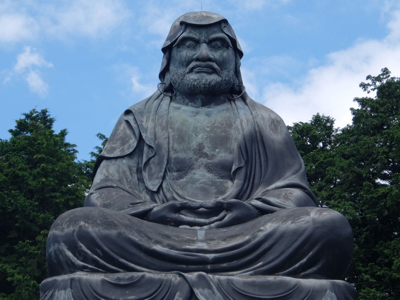 達磨(だるま)はインドの仏教僧で中国の禅宗の基礎を築いたとされており、少林寺で壁に向かい座禅を組み、九年もの間坐り続けていたとか、それで手も足も退化して亡くなったと言う逸話があるほど。