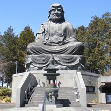 クルマの場合はそのまま坂を上がり、総合運動公園の前を過ぎたら右側に大きな達磨像が出迎えてくれる。