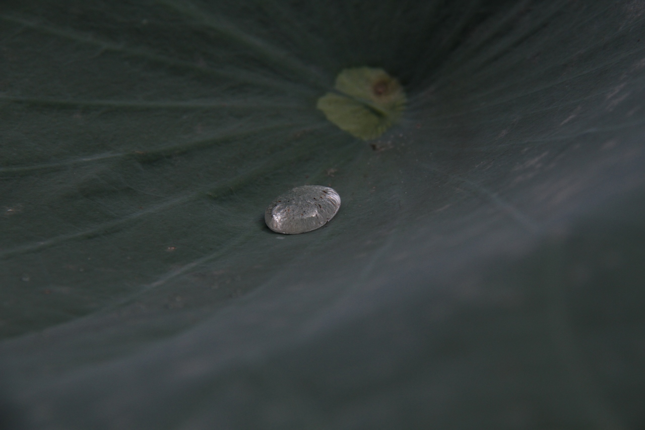 「犬のお散歩は禁止」の看板があります。夜の間に雨が降っていたので、花は雨のしずくを滴らせて、みずみずしく映ります。
