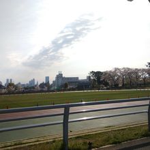 公園内の済美山運動広場から見える新宿副都心のビル群