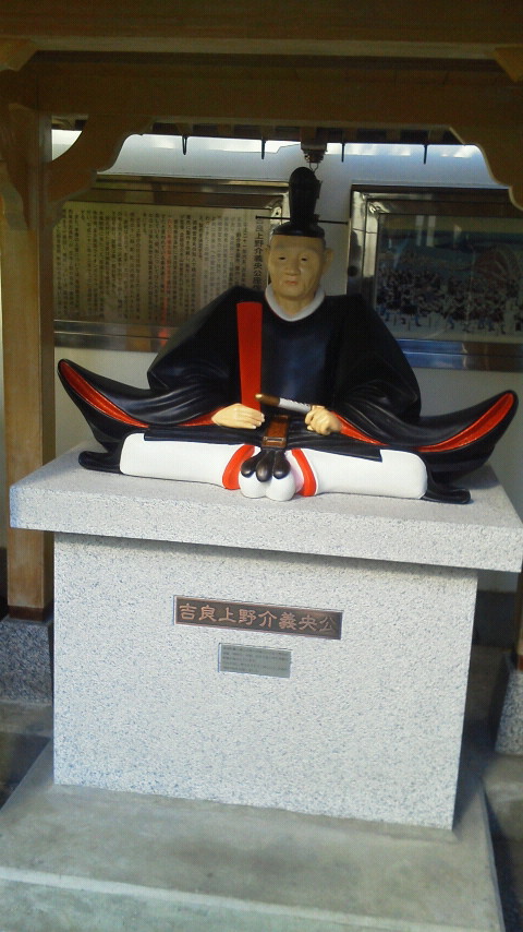 吉良上野介の人形など、忠臣蔵に縁のある品が並びます。