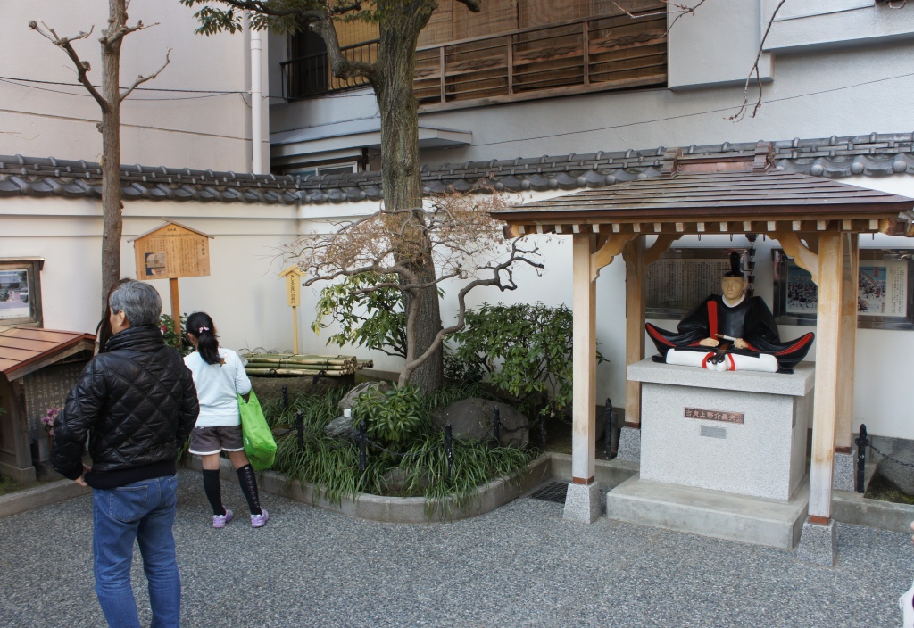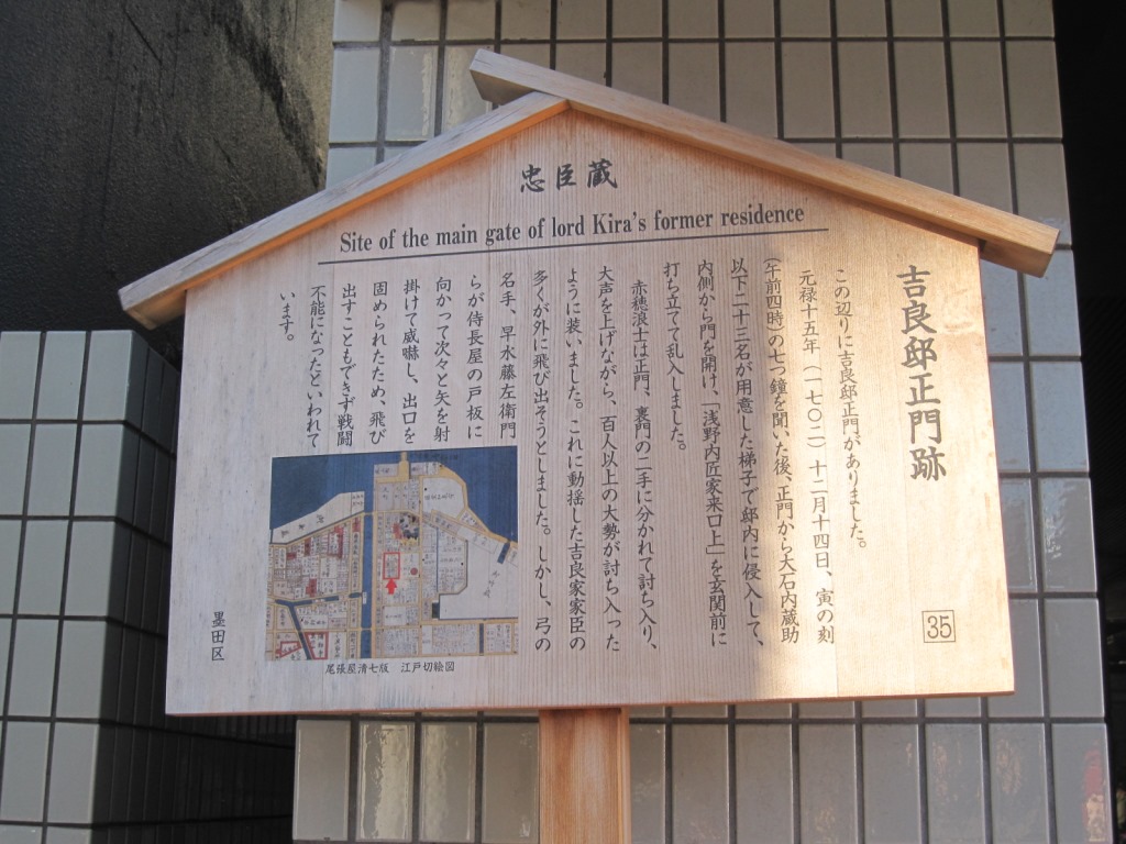 国技館の最寄り駅、JR両国駅の南側住宅街に忠臣蔵の一方の当事者、吉良上野介が住んでいた吉良邸がありました。かつて8400平... 続きを読む方メートルという大邸宅だったようですが、現在は100平方メートルほどの小さな敷地で、本物かどうかは定かではありませんが、ナマコ壁と黒塗りの門に囲まれてました。中には自由に出入りでき、中央に吉良上野介の座像、討ち入った赤穂浪士が切った吉良の首を洗ったという「みしるし洗い井戸」がありました。ところで、格式の高い吉良のような人物がなぜ江戸城から離れた両国のような場所に住んでいたのかなあと不思議に思いました。パンフを読むと、松の廊下の刃傷沙汰の時は江戸城に近い鍛冶橋に住んでいたのに、赤穂浪士が討ち入りにはいるという噂で周囲の大名から苦情が寄せられ、両国に移されたのだそうです。このことで、さらに討ち入りしやすくなったというのが世間の見方のようでした。 閉じる