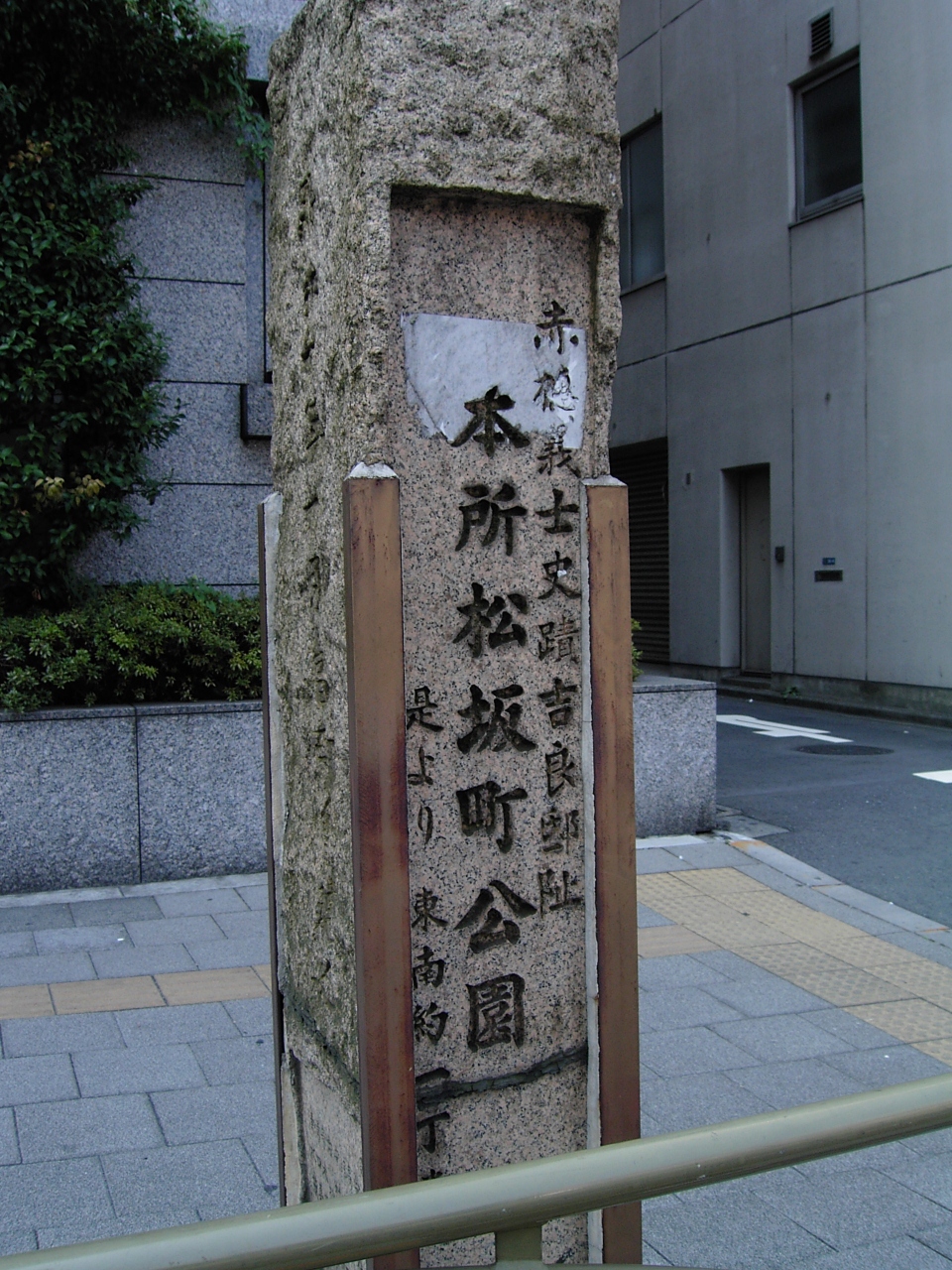 吉良上野介義央の上屋敷があったと本所松阪町公園由来碑、吉良家散策の巻