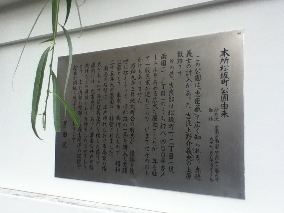 元の吉良邸の後の一部に出来た小さな場所が公園と呼ばれている。